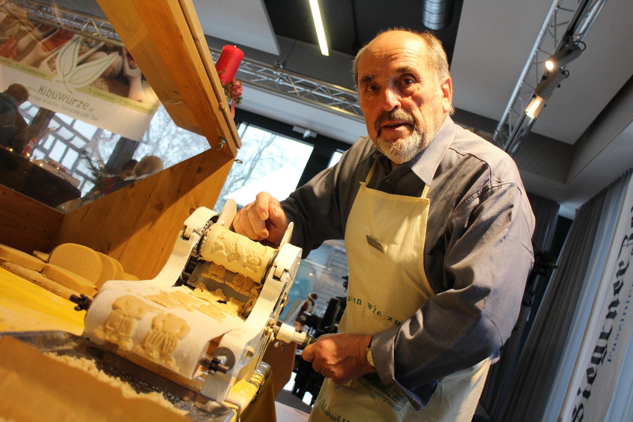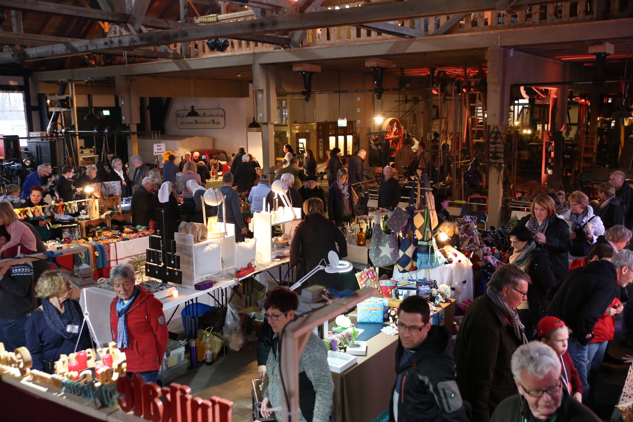 Rund 25 Ausstellerinnen und Aussteller präsentieren in den Hallen und auf der Empore ihre handgefertigten Produkte: von Holzarbeiten, Schmuck und Textilien bis hin zu Filzfiguren, Kerzen, Grußkarten und besonderen Geschenkideen. Wer möchte, kann Schmied, Drechsler oder Spinnerinnen bei der Arbeit über die Schulter schauen und erleben, wie Handwerk lebendig wird.