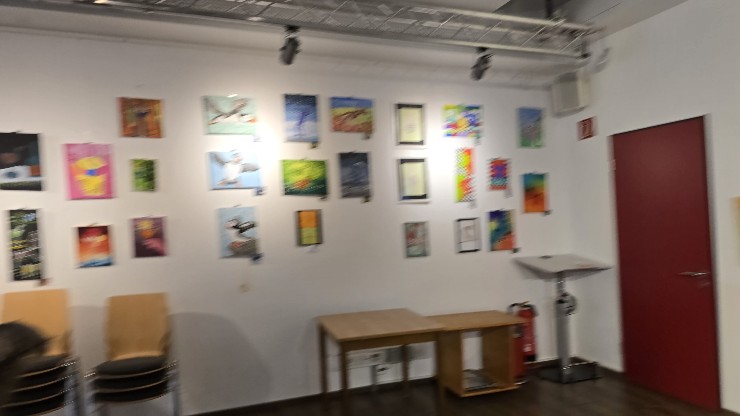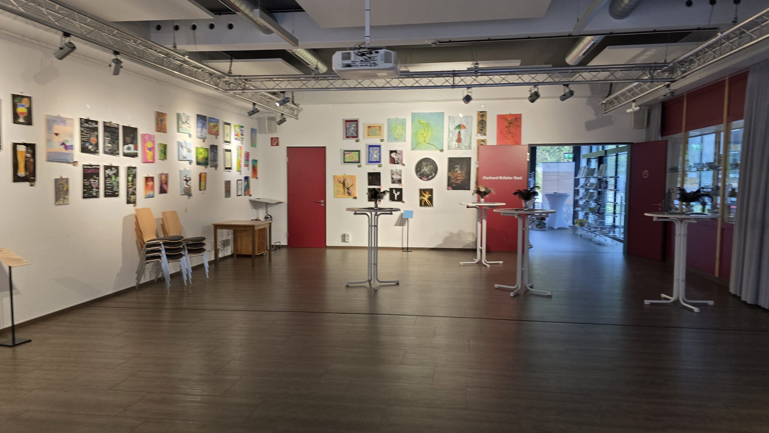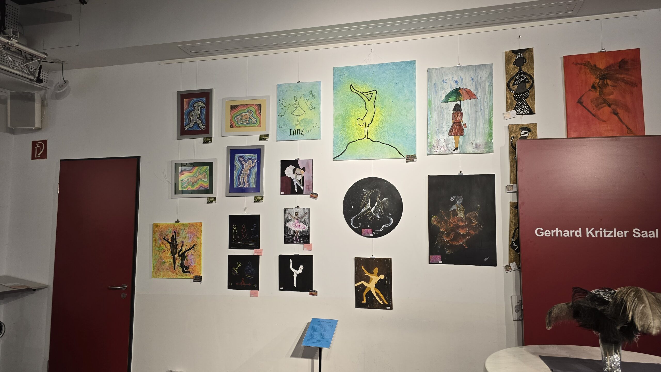 Nicht nur im Saal, sondern auch im Durchgang, der die historische Maschinenhalle mit dem Neubau des Museums verbindet, werden neue Kunstwerke ausgestellt. Eingerahmt von dunklen Fachwerkbalken der früheren Außenfassade wird unter dem Titel „Moulin Rouge“ die Atmosphäre im Varietétheater mit Tänzerinnen, großer Bühne und vielen Nuancen der Farbe Rot dargestellt.