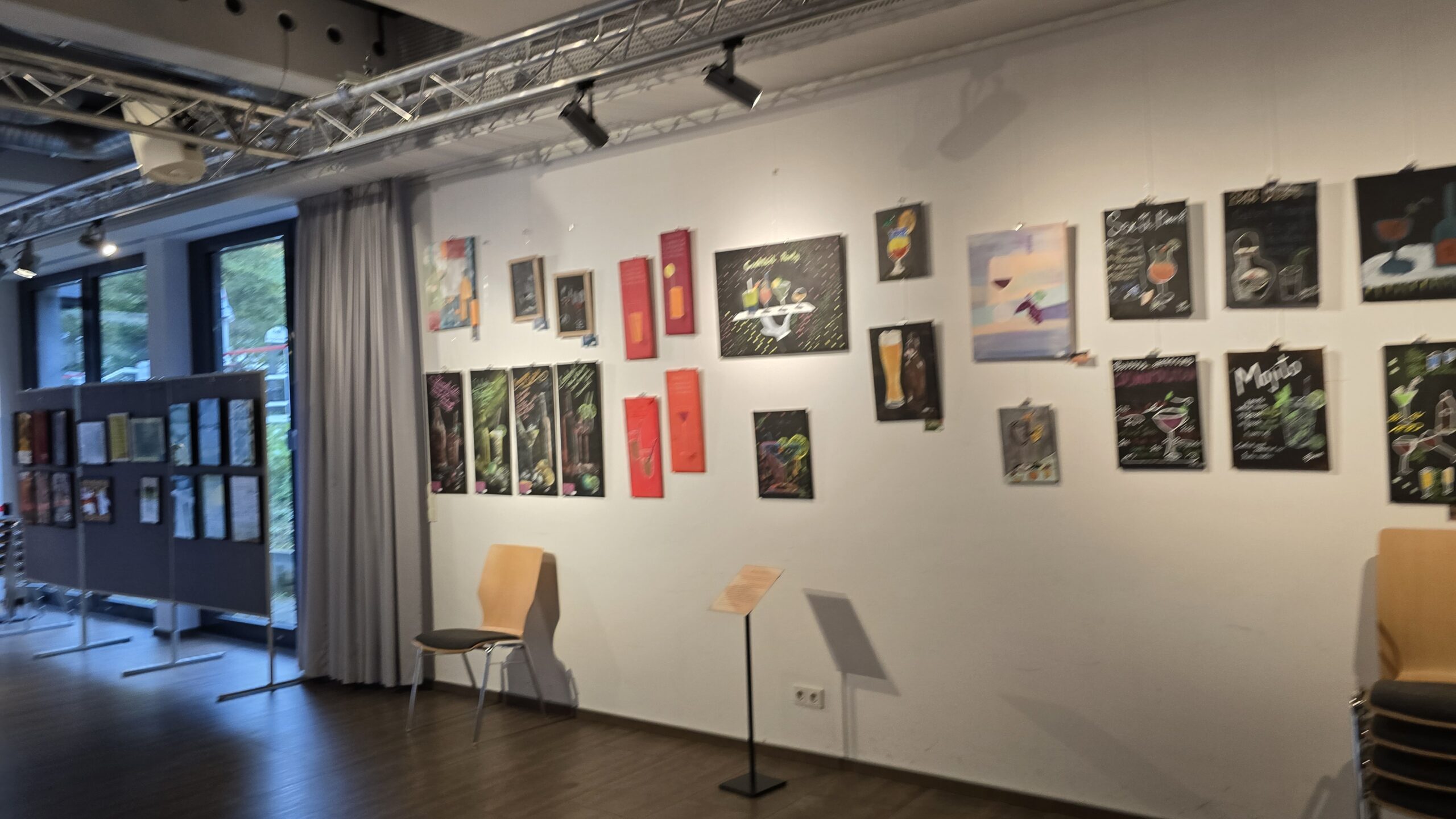 Ein kleines Fest für die Sinne fand am 26.09.25 im Technikmuseum in Freudenberg statt: Die Vernissage zur Ausstellung „Farbcocktail“ der Malgruppe Flotter Pinsel lockte rund 60 Besucherinnen und Besucher an, die einen gelungenen Abend erlebten. Für die Augen gab es vielfältige farbenfrohe Werke an den Wänden des großen Saals zu sehen. In der Begrüßungsansprache wurden die Themen und die Ideen dahinter vorgestellt, zudem waren viele der Künstlerinnen anwesend, mit denen die Gäste ins Gespräch kommen konnten. Für die Ohren wurde ebenfalls etwas geboten: Die Meladies, drei junge Frauen aus Osthelden, begleiteten die Veranstaltung mit beeindruckendem dreistimmigen Gesang, der viele im Publikum sehr berührte. Nach Ansprache und Musik wurden auch noch der Geschmacks- und der Geruchssinn angesprochen, denn an der Cocktailbar wurden passend zum Titel der Ausstellung bunte Getränke gemixt.